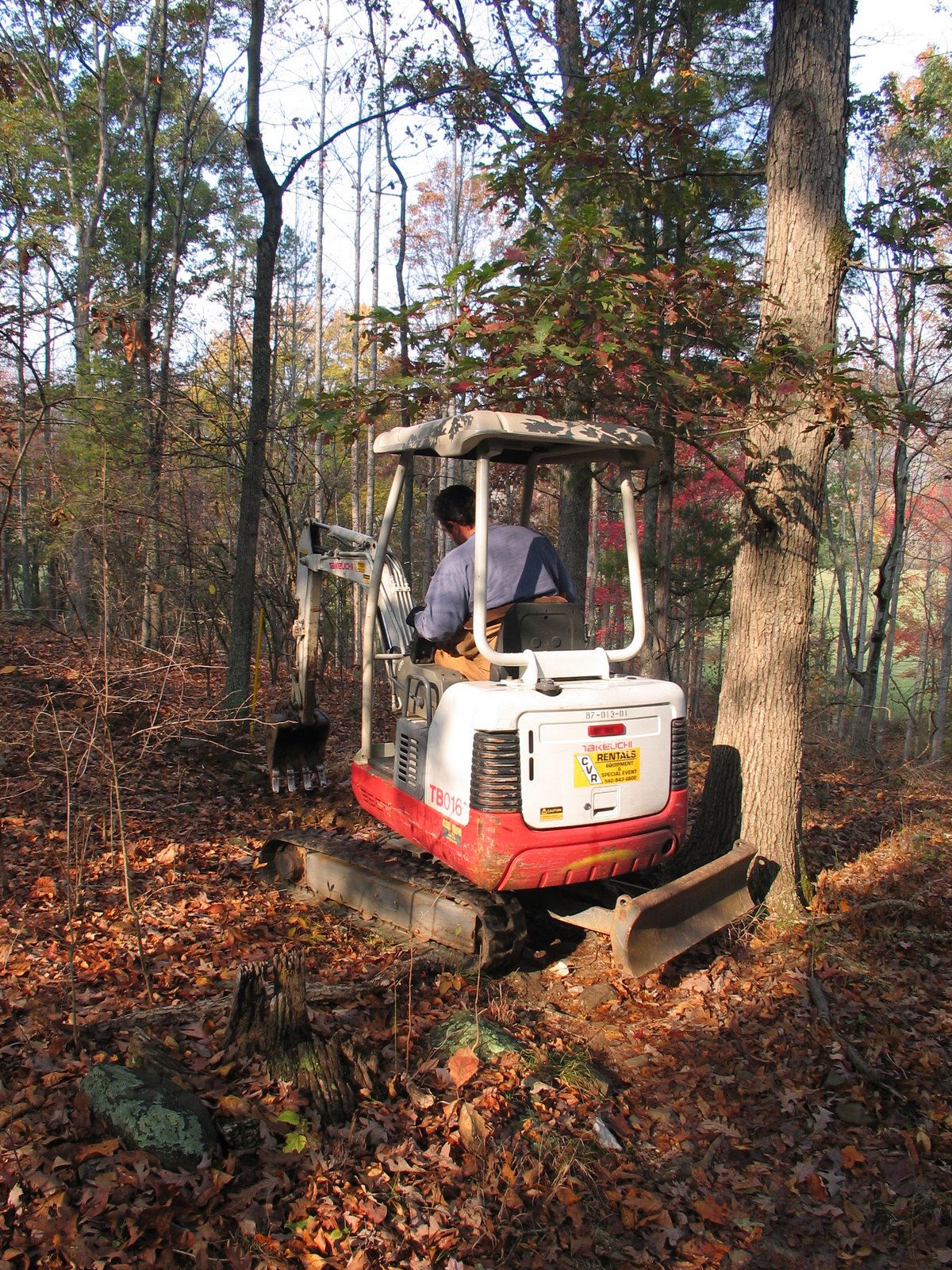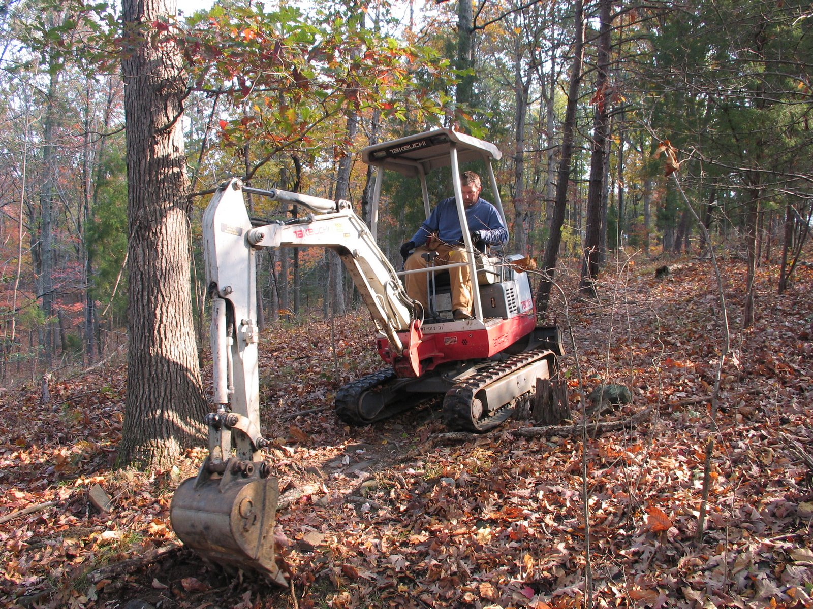 Mini-excavator in use at November 3007 trailwork day at Walnut Creek Park.